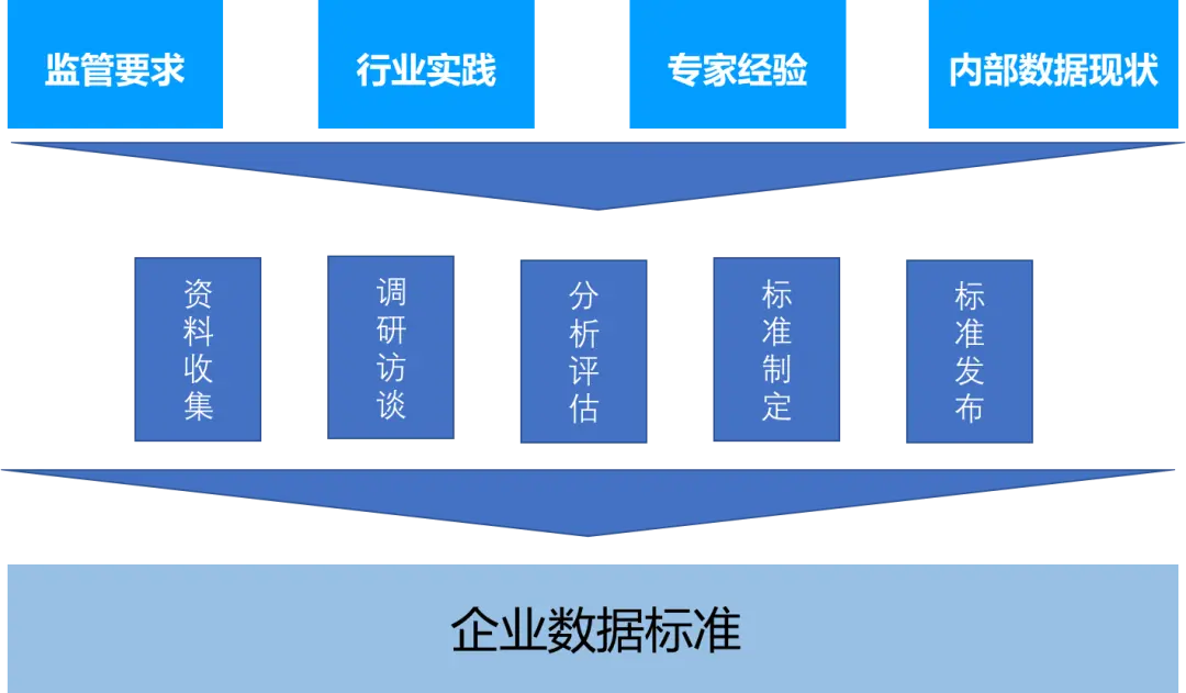 企业的数据标准来源非常丰富,有外部的监管要求,行业的通用标准,同时也必须考虑到企业内部数据的实际情况,梳理其中的业务指标、数据项、代码等,将以上所有的来源都纳入数据标准是没有必要的,数据标准的范围应该主要集中在企业业务最核心的数据部分,有的企业也称作关键业务数据或核心数据,只要制定出这些核心数据的标准,就能够支撑企业数据质量、主数据管理、数据分析等需要。