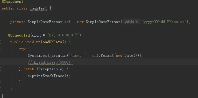 @Scheduled(cron = "0/5 * * * * ?")