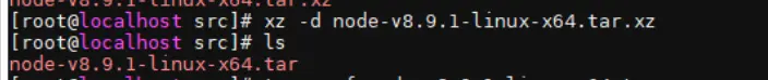 命令行: xz -d node-v8.9.1-linux-x64.tar.xz(这样解压后还会有tar的文件)