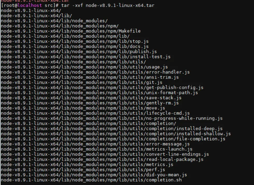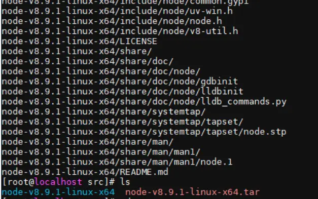 再执行命令行: tar -xvf node-v8.9.1-linux-x64.tar