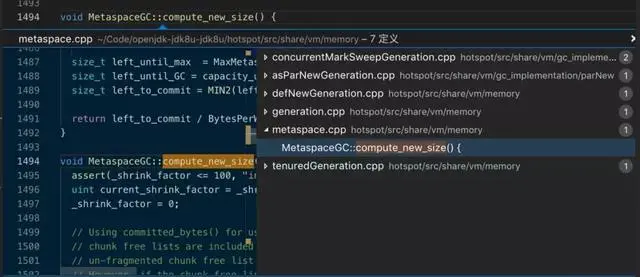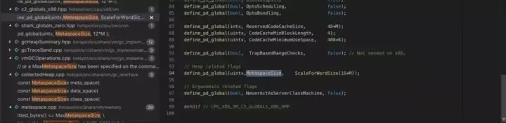 MetaspaceSize表示metaspace首次使用不够而触发FGC的阈值,只对触发起作用,原因是:垃圾搜集器内部是根据变量 _capacity_until_GC来判断metaspace区域是否达到阈值的,初始化代码如下所示: