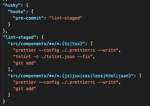 husky也是一个很好的用的npm包,可以结合eslint、tslint、prettier进行代码的格式化,前端代码可以在package.json里面添加配置。