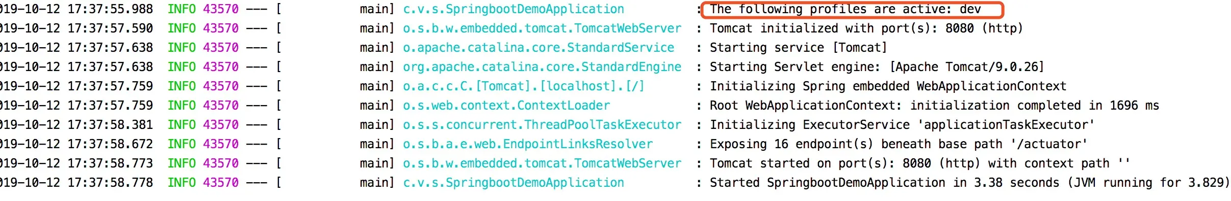 通过java -jar springboot-demo-0.0.1-SNAPSHOT.jar --spring.profiles.active=dev指定环境进行测试