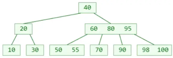 然后再往B树种插入元素95,完成后的结果为