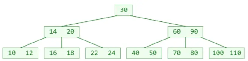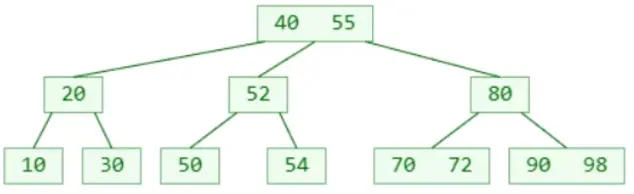 - 1个节点可以存储超过2个元素,可以拥有超过2个子节点