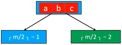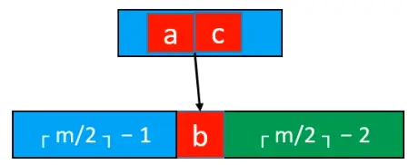 由于B树的性质,我们可以知道,下溢节点的元素数量必然等于⌈m / 2⌉ - 2,如下图