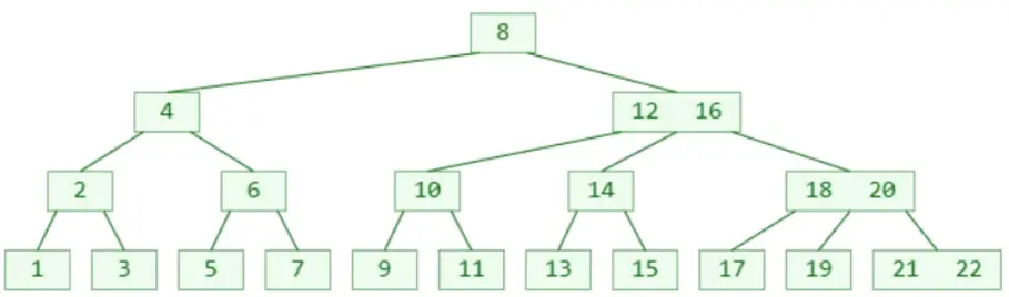 例如:m = 3 ,此时 Y的取值范围为 2 ≤ Y≤ 3,因此可以成为(2,3)树,或者2-3树