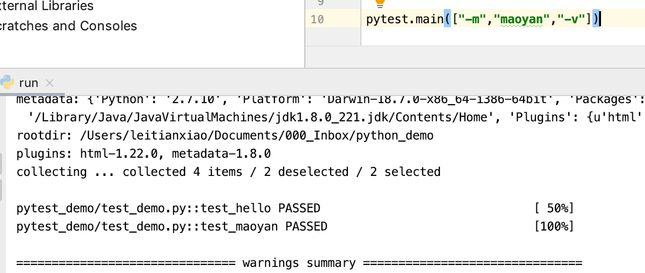 pytest.main(["-k","hello","-v"]) pytest.main(["-k","hello","-m","not general","-v"])