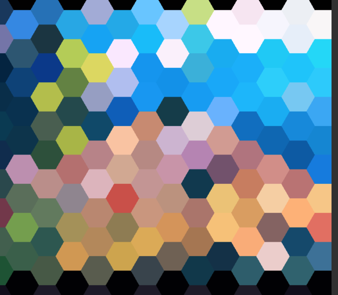 根据行和列的奇偶数排列规则,计算一个矩形块内的任意点距离哪个六边形的距离短,就属于哪个六边形.