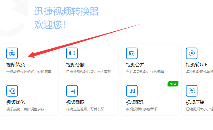 1、想要转换rmvb格式的视频首先就需要安装迅捷视频转换器到电脑上,然后双击打开软件,打开之后可以看到有很多的功能按钮,因为这次是要转换视频格式,所以点击视频转换。,其他的功能可以自己事后实验。