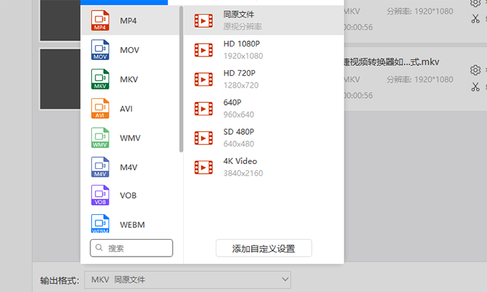 3、之后就需要选择转换成功的视频的输出格式了。软件支持所有的视频格式和音频格式转换。但是这里我们需要转换成mp4视频文件格式,所以可以在软件下面的输出格式中选择为mp4视频格式。