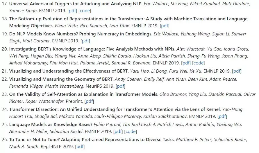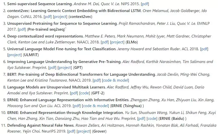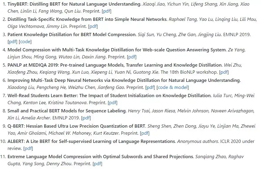 除了这张关系图,两位同学还给出了一份预训练语言模型必读论文列表。列表分为三个部分:模型、知识蒸馏与模型压缩以及相关分析论文。机器之心曾经介绍过其中的一些论文,读者可以根据链接找到相关论文中文介绍。