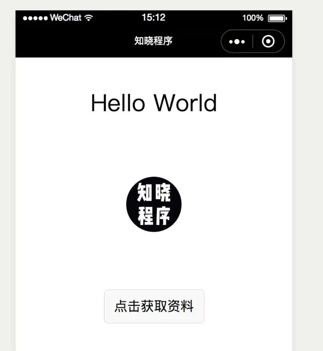 保存代码并编译,就可以看到小程序刚启动时会自动载入初始数据。点击按钮,欢迎语和图片将会自动替换为用户资料。
