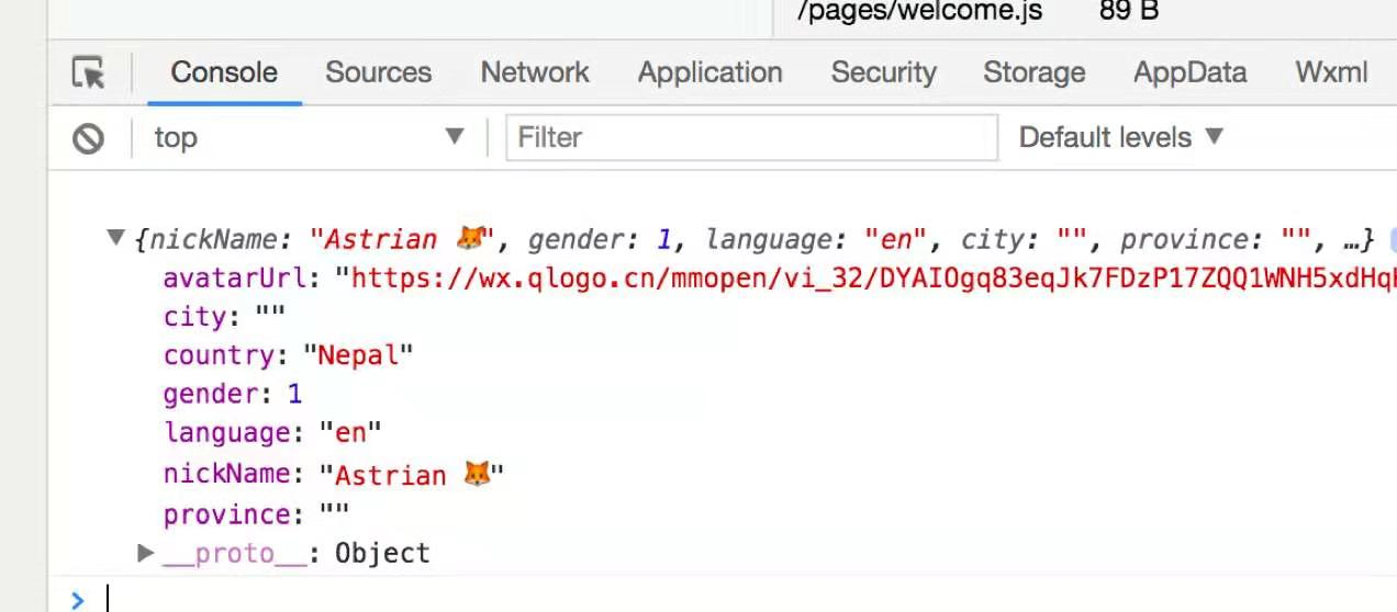 点击「同意」,在调试器(开发者工具的右下角区域)的 Console 标签中,就可以看到我们已经成功获取用户数据。