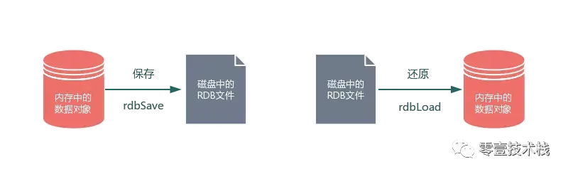 RDB 持久化(也称作快照持久化)是指将内存中的数据生成快照保存到磁盘里面,保存的文件后缀是 .rdb。rdb 文件是一个经过压缩的二进制文件,当 Redis 重新启动时,可以读取 rdb 快照文件恢复数据。RDB 功能最核心的是 rdbSave 和 rdbLoad 两个函数, 前者用于生成 RDB 文件并保存到磁盘,而后者则用于将 RDB 文件中的数据重新载入到内存中: