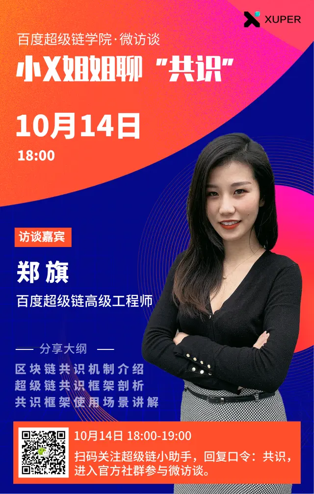 【百度超级链学院微访谈】邀你一起来聊聊区块链共识那点事~ 百度超级链 2019-10-12 445 阅读1分钟 百度超级链学院第一期微访谈来咯~10月14日18-19点,百度超级链高级工程师 郑旗(小X姐姐),就在超级链官方开发者社群与大家一起聊聊“区块链共识”那点事儿,欢迎大家一起来交流、互动~