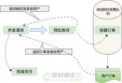 那么有没有一种不需要直接操作数据库 IO 的方案呢,这就是预扣库存。先扣除了库存,保证不超卖,然后异步生成用户订单,这样响应给用户的速度就会快很多;那么怎么保证不少卖呢?用户拿到了订单,不支付怎么办?