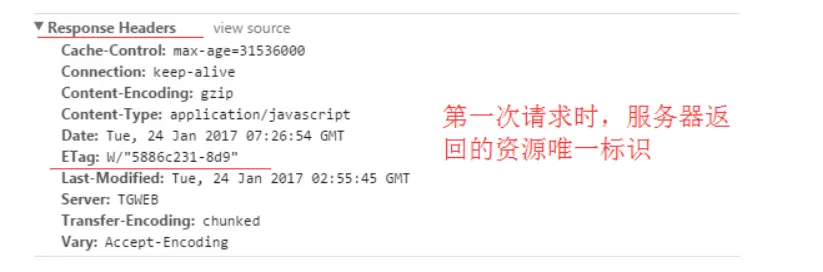 服务器响应请求时,告诉浏览器当前资源在服务器的唯一标识(摘要)
