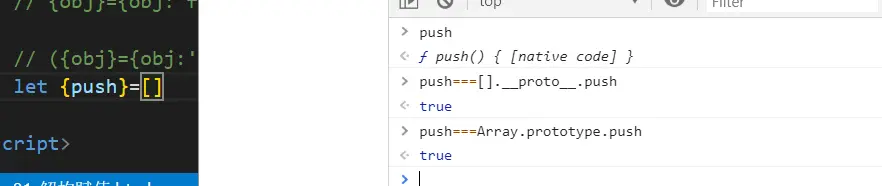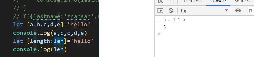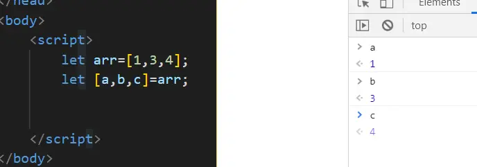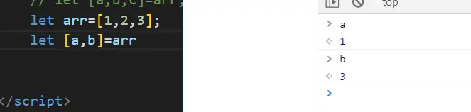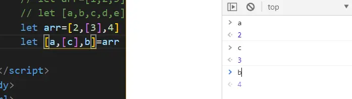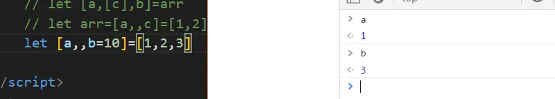 3.多维数组解构赋值,左右两边多维数组的下标要相同,否则报错