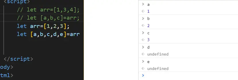2.左右数量不等,会相应的对号入座,没有的以undefined赋值