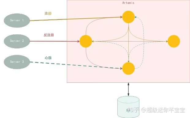 在服务治理这方面,携程现有的 SOA 框架已经有了一套完整的服务注册中心和服务治理系统。对于服务注册中心,大家比较常用的可能是 Apache Zookeeper 。而我们使用的是参考 Netflix 开源的 Eureka 自行研发的注册中心 Artemis 。Artemis 的架构是一个去中心的对等集群。各个节点的地位相同,没有主从之分。服务实例与集群中的任意一个节点保持长连接,发送注册和心跳信息。收到信息的节点会将这些信息分发给其他节点,确保集群间数据的一致性。客户端也会通过一个长连接来接受注册中心推送的服务实例列表信息。