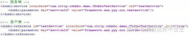 由于 Dubbo 本身并没有 ServiceID 的设计,这里的问题就是如何向注册中心传递一个 interface 所对应的 ServiceID 信息。我们的方法是在 Service 和 Reference 配置中增加一个 serviceId 参数。ArtemisServiceRegistry 的实现会读取这个参数,并传递给注册中心。这样就可以正常的与注册中心进行交互了。
