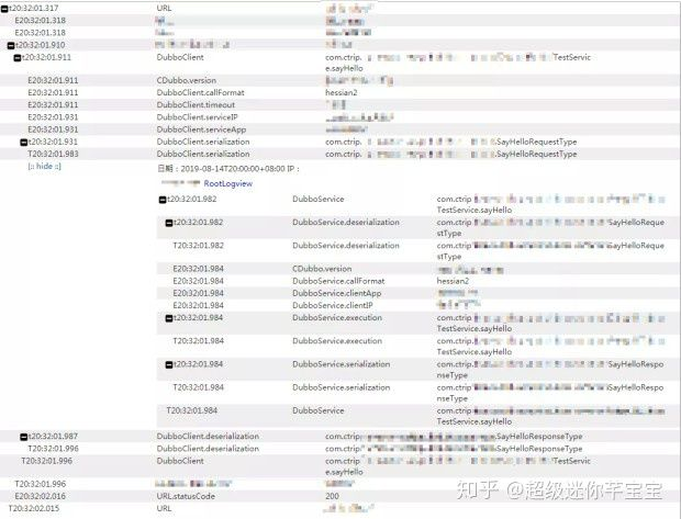 在监控服务调用链上,我们使用的是 CAT 。CAT 是美团点评开源的一个实时的应用监控平台。它通过树形的 Transaction 和 Event 节点,可以将整个请求的处理过程记录下来。我们在 Dubbo 的客户端和服务端都增加了 CAT 的 Transaction 和 Event 埋点,记录了调用的服务、 SDK 的版本、服务耗时、调用方的标识等信息,并且通过 Dubbo 的 Attachment 把 CAT 服务调用的上下文信息传递到了服务端,使得客户端和服务端的监控数据可以连接起来。在排障的时候就可以很方便的进行查询。在图上,外面一层我们看到的是客户端记录的监控数据。在调用发起处展开后,我们就可以看到对应的在服务端的监控数据。