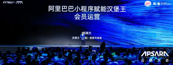 支付宝小程序商家代表、汉堡王(中国)首席市场官邓顺文介绍了阿里巴巴小程序如何赋能汉堡王会员运营。汉堡王借助支付宝蚂蚁森林、芝麻信用、支付宝轻会员能力进行场景化营销,并通过阿里云智能选址、阿里云智能营销能力、支付宝点餐大屏和蜻蜓智能支付等多端生态工具,全线优化了会员O2O的闭环体验。