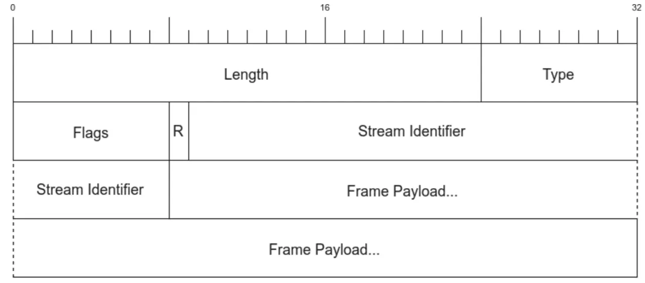 从另一方面来说,有了帧,处理协议的程序就能预先知道会收到什么。基于帧的协议,特别是 h2,开始有固定长度的字节,其中包含表示整帧长度的字段。