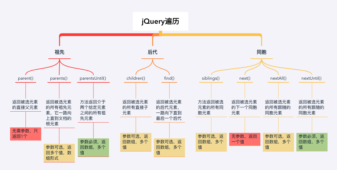 jQuery遍历总结 月落梅影 2019-10-12 168 阅读1分钟 注意:除了parent()与next()以外,返回的都是数组,如果返回只有一个元素,别忘了加上element[0],多个值的需要通过each()遍历。