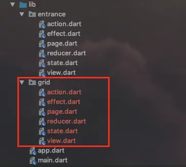 我们用上一篇讲述的的方式:创建 package 、创建 FishReduxTemplate 来得到新的页面,取名叫 Grid 。
