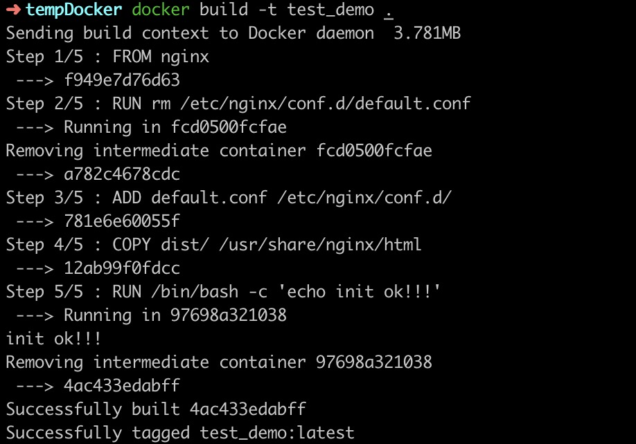 # 在容器安装nginxFROM nginx# 移除NGINX的default.confRUN rm /etc/nginx/conf.d/default.conf# 把配置好的nginx配置文件添加到 /etc/nginx/conf.d/ 目录下ADD default.conf /etc/nginx/conf.d/# 把前端项目文件夹 复制COPY dist/ /usr/share/nginx/htmlRUN /bin/bash -c 'echo init ok!!!'2. 新建一个nginx配置文件