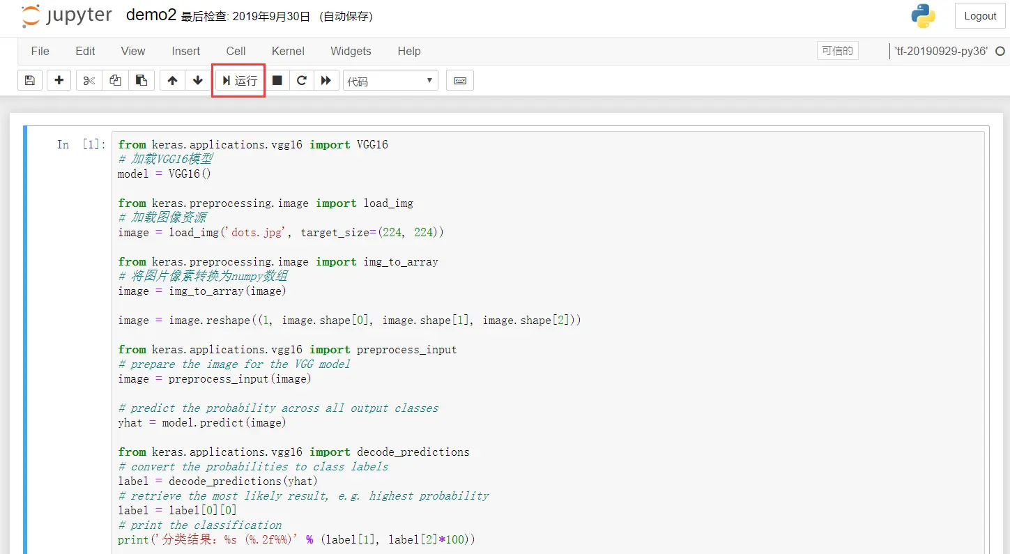 3.2 Jupyter新建python程序,通过API调用VGG模型