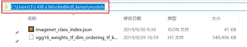 windows10下默认路径:C:\Users\To Kill a MockinBird\.keras\models;