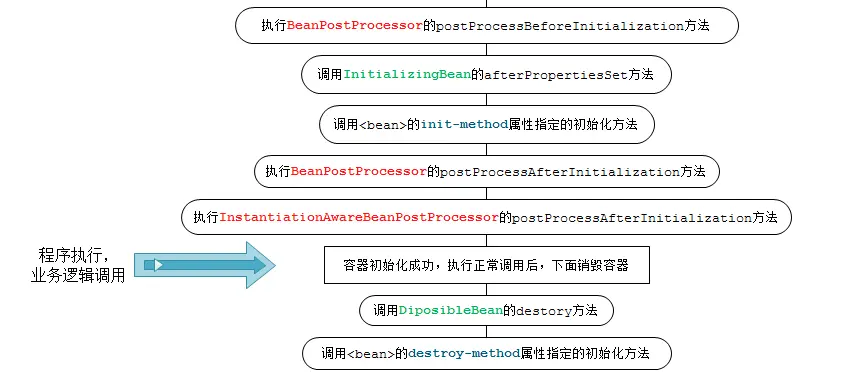 若容器注册了以上各种接口,程序那么将会按照以上的流程进行。下面将仔细讲解各接口作用。