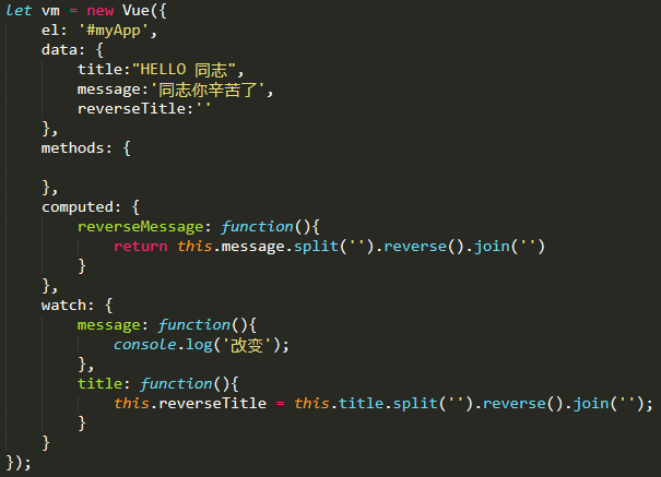 - 虽然计算属性在大多数情况下更合适,但有时也需要一个自定义的侦听器。这就是为什么 Vue 通过 watch 选项提供了一个更通用的方法,来响应数据的变化。当需要在数据变化时执行异步或开销较大的操作时,这个方式是最有用的
