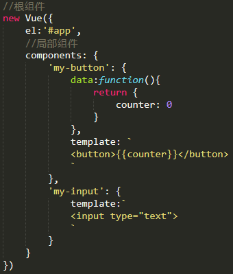 - 一个 Vue 应用由一个通过 new Vue 创建的根 Vue 实例,以及可选的嵌套的、可复用的组件树组成。