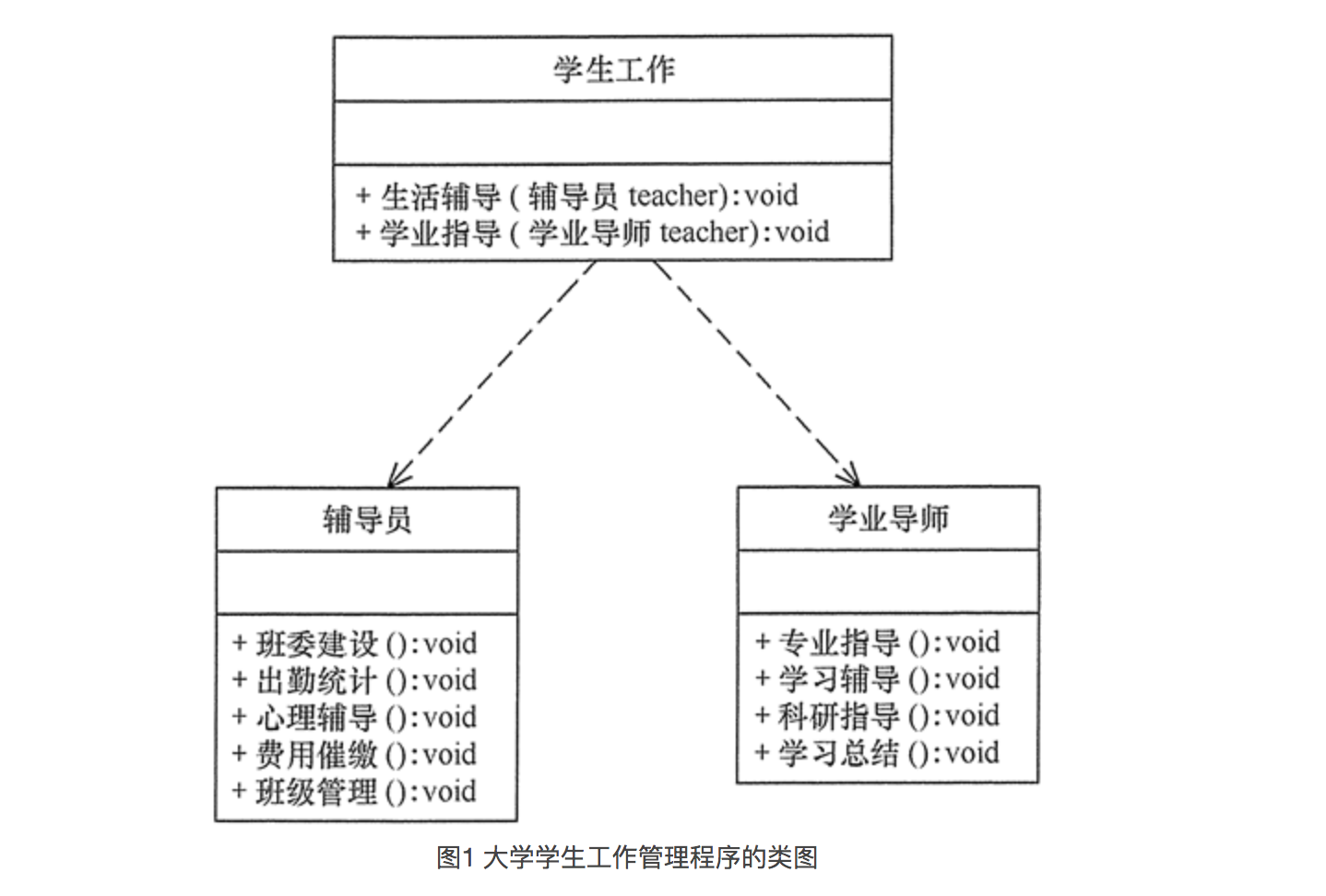 看一个例子 :一个学校的学生工作,分为生活辅导和学习辅导,假如由一个老师全部负责的话有点太重了,正确的做法是生活辅导有生活老师进行辅导,学习辅导由学习老师进行辅导