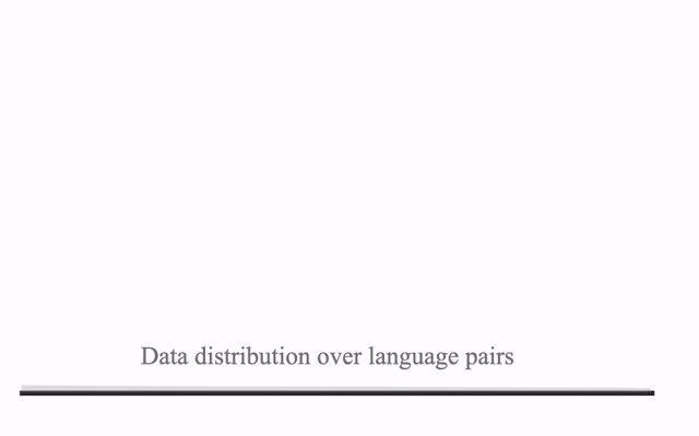 尽管跨语言对数据倾斜是 NMT 任务中的一大挑战,但这种倾斜也为研究迁移创造了一种理想情景,在一种语言上训练得到的信息可以应用到其他语言的翻译中。法语、德语、西班牙语等数据丰富的语言占据分布的一端,提供了数十亿的平行语料;约鲁巴语、信德语、夏威夷语等数据匮乏的语言占据分布的另一端,只有几万的语料。