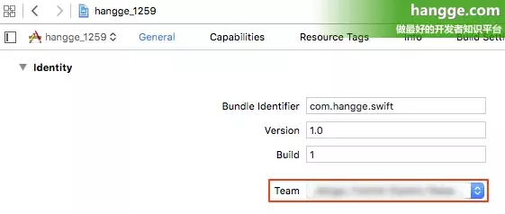 (2)打开项目,在“General”->“Team”中选择团队名称。