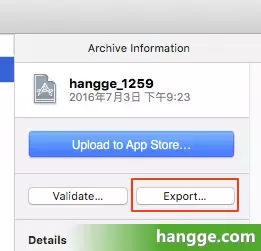 (12)然后选择点击“Export”就可以导出.ipa安装包及其相应的 .plist 文件。