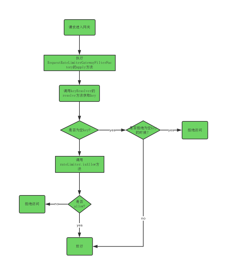 key是通过调用KeyResolver实例来获取的,判断是否允许访问是通过调用RateLimiter来决定的。分工还是很明确的,所以要使用Spring Cloud Gateway限流只需要实现这两个接口再加上过滤器配置就可以啦。