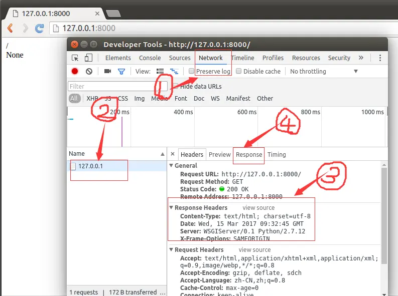 运行服务器,在浏览器中浏览首页,可以在浏览器“开发者工具”中看到响应信息如下图: