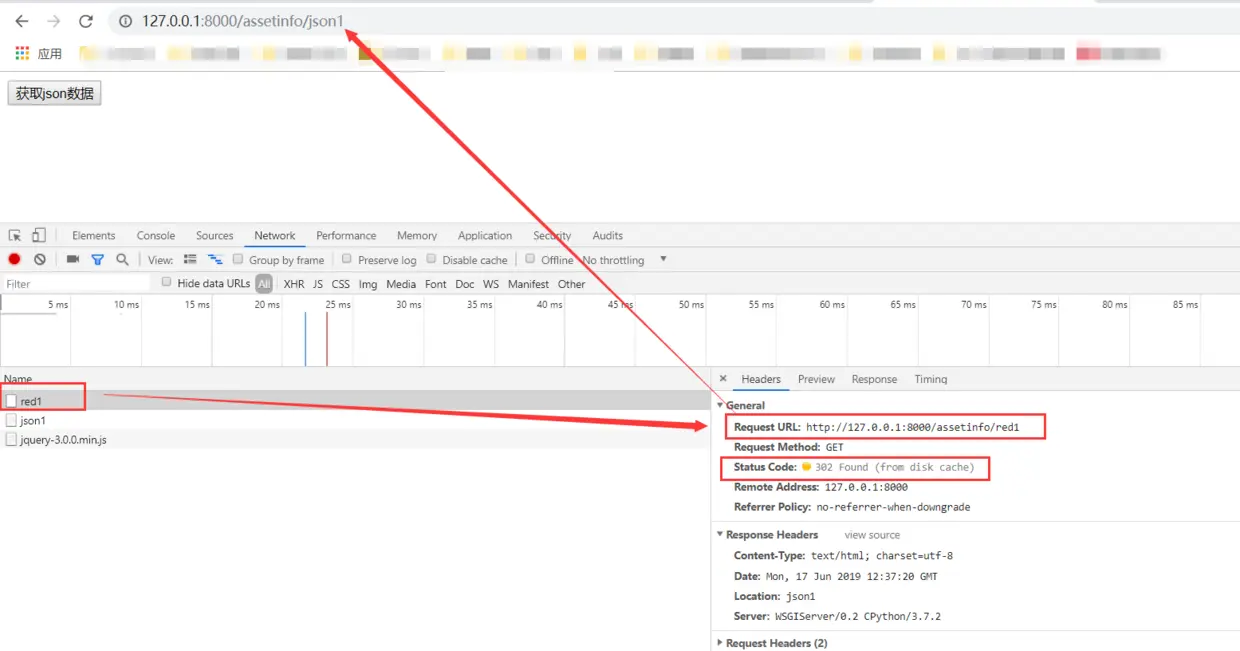 3)访问浏览器测试重定向 访问 http://127.0.0.1:8000/assetinfo/red1