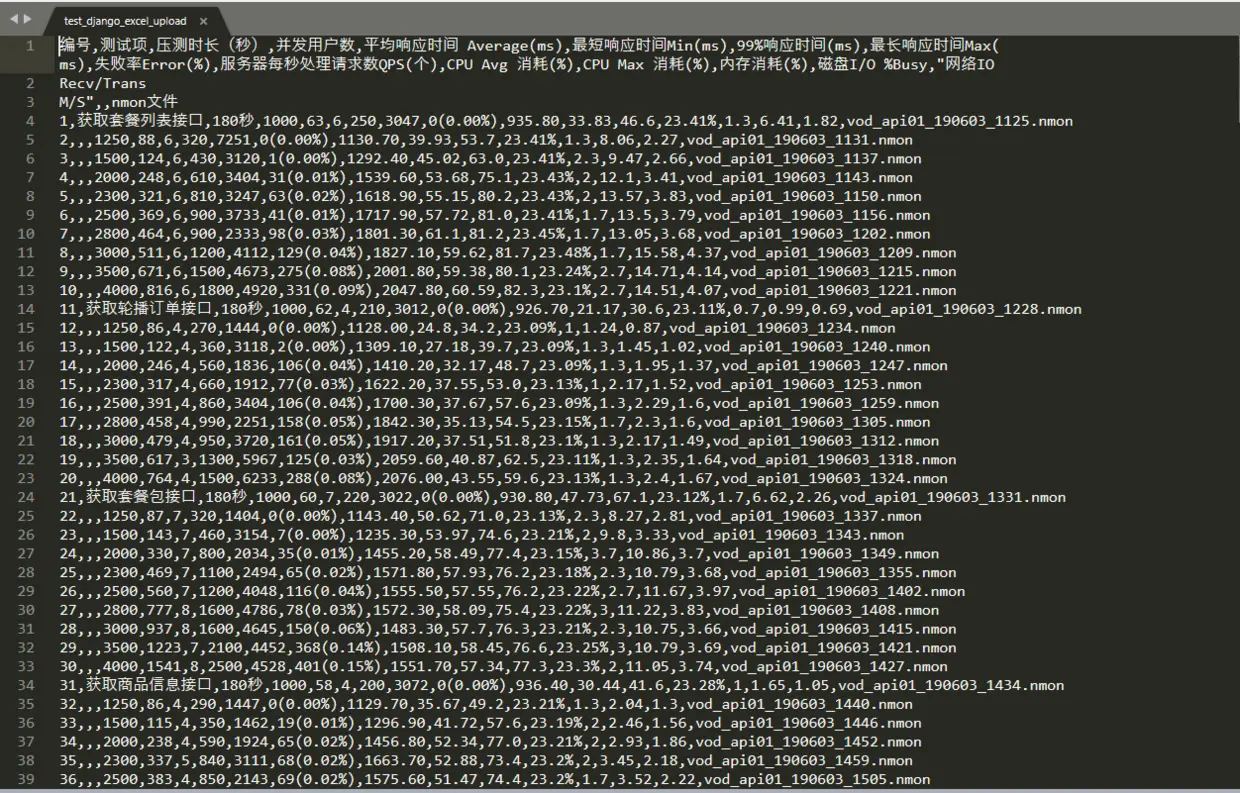 可以看到上传的excel文件转化未csv格式的文件,并提供了下载。 打开看看下载下来的csv文件,如下: