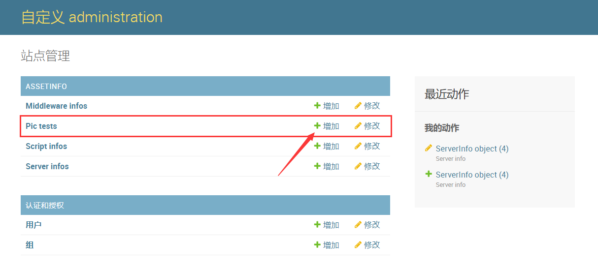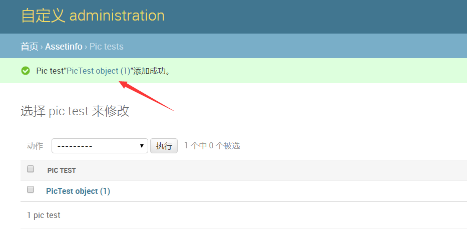 1)打开assetinfo/admin.py文件,注册PicTest。