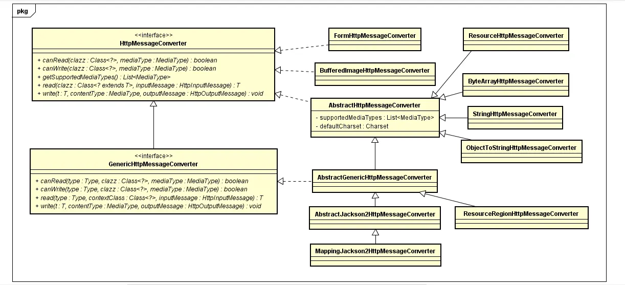 read和write方法的参数分别有有HttpInputMessage和HttpOutputMessage对象,这两个对象分别代表着一次 Http 通讯中的请求和响应部分,可以通过getBody方法获得对应的输入流和输出流。