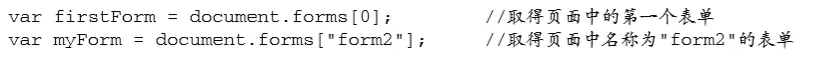 通过document.forms取得页面中所有的表单,可以通过数值索引或者name值来取得特定的表单