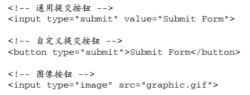 使用<input>或<button>可以定义提交按钮,只需要将其type特性的值设置为“sumit”即可,而图像按钮通过将<input>的type特性值设置为“image”来定义