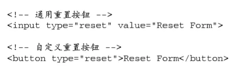 使用type特性值为"reset"的<input>或<button>都可以创建重置按钮